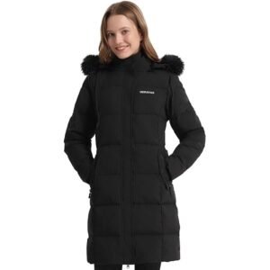 Women’s Long Down Coat with Detachable Faux Fur Hood, Water-Repellent Winter Puffer Parka Jacket