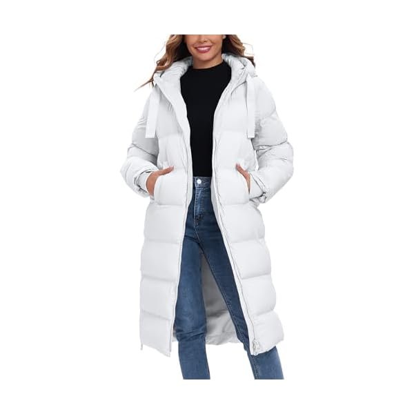 - FEATURES: Womens puffer winter jacket, calf length, large enough hood design, complete wrap around the whole head, hood with drawstring, windproof and warm, fully supportive of outdoor activities in the cold, 2 side pockets (the pockets are thoughtfully padded with fleece, which can be used as an alternative to gloves in winter to bring warmth to your hands)